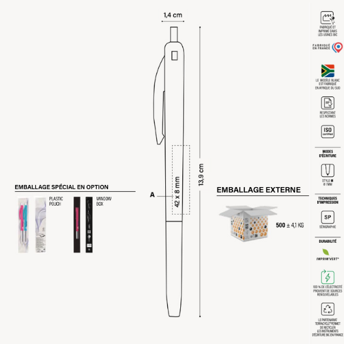 ⚠️ - Quantité minimum de commande pour Sérigraphie 1 Couleur et Gravure Laser 1 Position : 100 stylos.