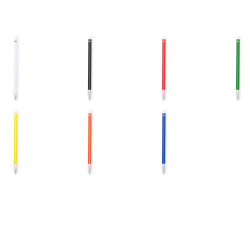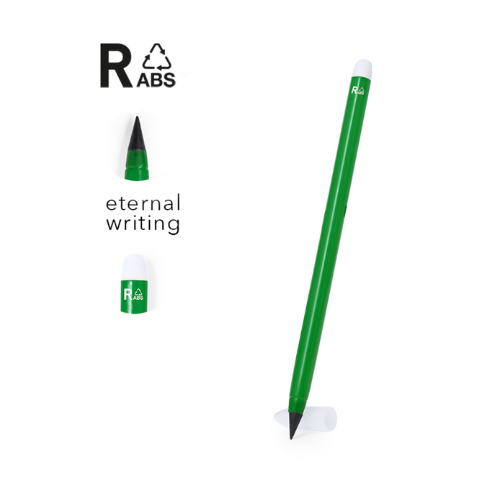 Crayon éternel en RABS. Réutilisable et avec une écriture infinie, pour toujours utiliser le même crayon et ne pas générer de déchets. Comprend une gomme sur le dessus du crayon et un capuchon pour protéger l'embout. Avec logo RABS sur une extrémité du canon et disponible dans une large gamme de couleurs.