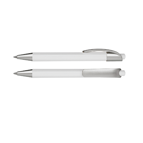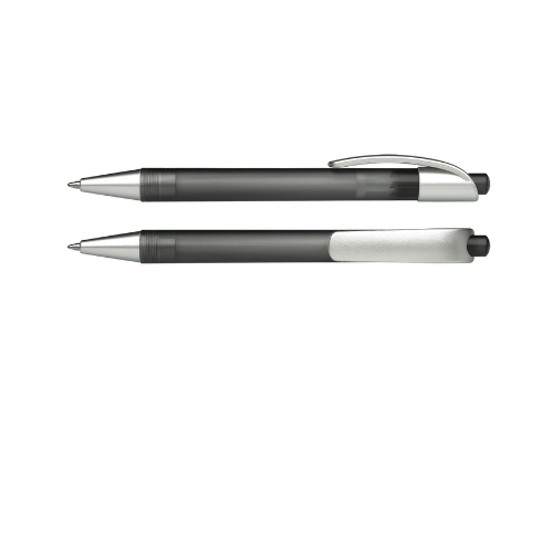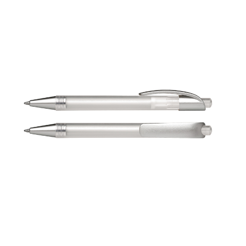 Stylo à bille rétractable en plastique transparent ou opaque.