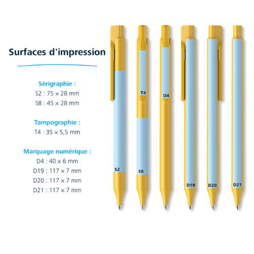 Stylo à bille rétractable en plastique transparent ou opaque.