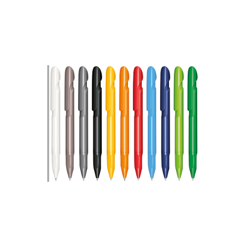 Le corps du stylo est injecté en bioplastique. Corps et pointe: injectés à partir de matériaux renouvelables à base de canne à sucre, certifié sans OGM, surface mate, partie supérieure et clip transparents.