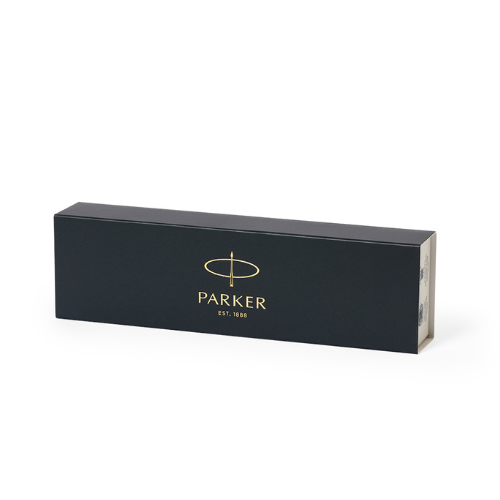 Finition rétro et fabriqué en combinaison d’acier inox et résistant RABS (ABS recyclé). Avec mécanisme poussoir, cartouche intérieure Parker classique et encre noire. Avec un style simple et des lignes épurées, un classique de Parker. Présentation en coffret noir avec logo Parker et disponible dans une gamme variée de couleurs élégantes.