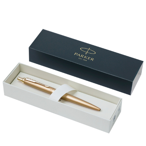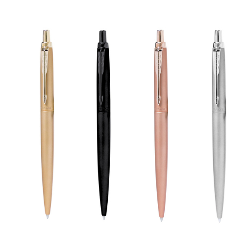 Un classique parmi les stylos à encre gel. Fabriqué en acier inox, avec des décorations et le clip de forme emblématique en pointe de flèche de la marque. Avec un mécanisme à bouton, un cartouche classique intérieure Parker et en encre bleue. Présentation dans un étui individuel noir avec logo Parker.