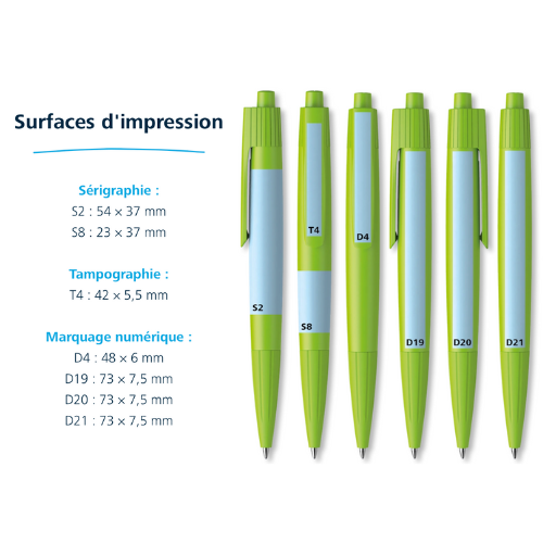 Stylo à bille rétractable en plastique transparent ou opaque en 22 couleurs vives.