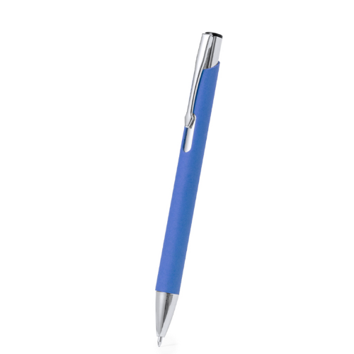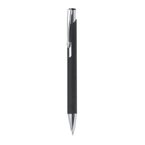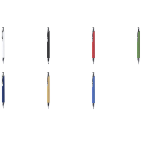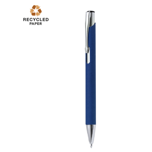 Stylo de ligne nature avec bouton poussoir. Combinaison de corps en papier recyclé de couleur naturelle et accessoires en métal. Disponible dans une gamme de couleurs variées, avec encre bleue.