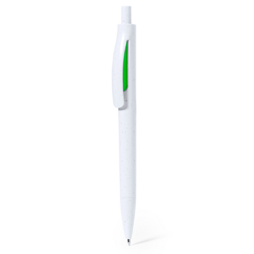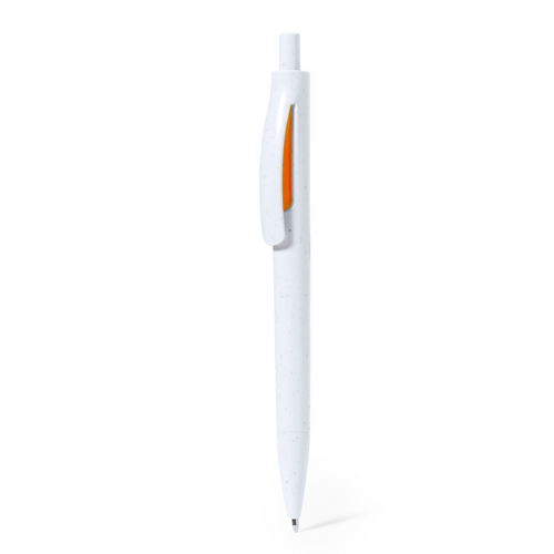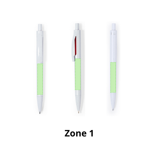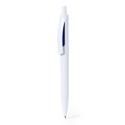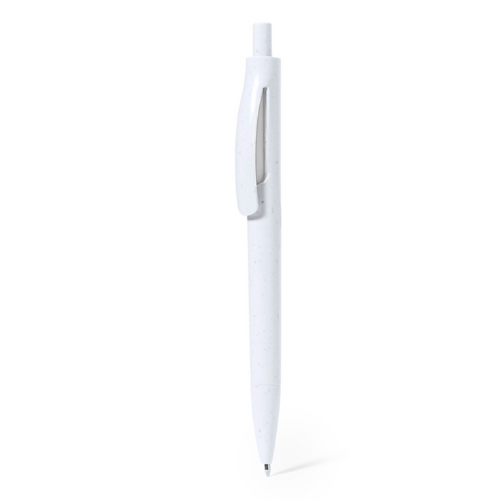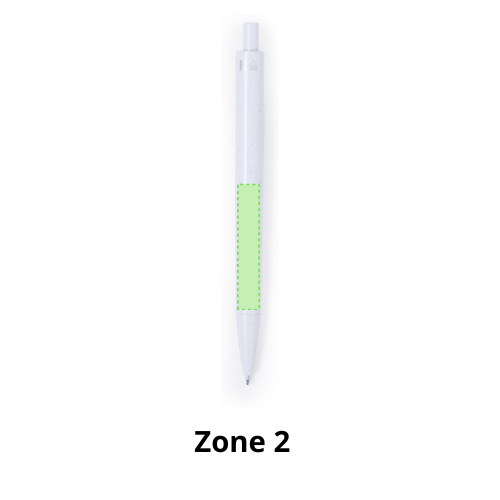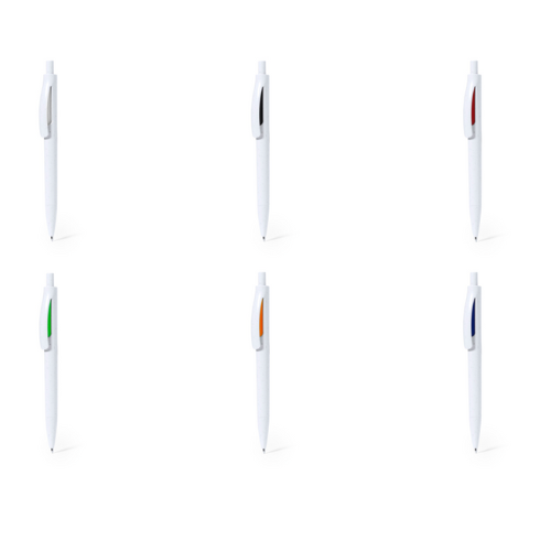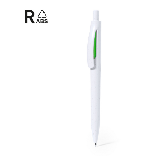 Stylo à bille à bouton-poussoir en ABS recyclé. Avec des accessoires aux couleurs vives et un corps au fini blanc uni doux. ABS recyclé distinctif sur le dessus du stylo. A l'encre bleue.