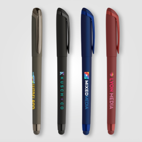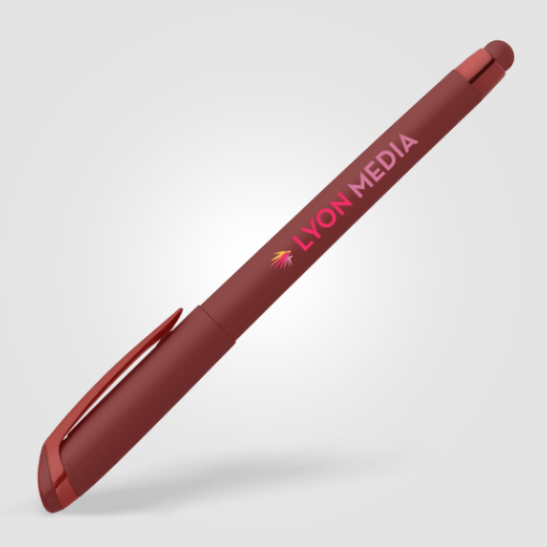 Notre stylo Gazelle Gel Monochrome séduira rapidement vos clients - ils adoreront la finition confortable du corps en caoutchouc, le capuchon assorti, les finitions, la prise en main profilée et le stylet compatible avec les écrans tactiles. De plus, l'encre gel lisse offre une expérience d'écriture de qualité supérieure. Personnalisez avec votre logo en sérigraphie 1 couleur.