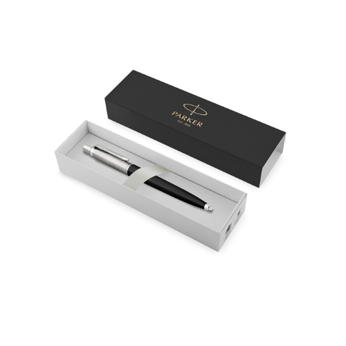 Finition rétro et composé d'une combinaison d'acier inoxydable et d'ABS résistant. Avec mécanisme à bouton-poussoir, cartouche intérieure Parker classique et encre noire. Avec un style simple et des lignes épurées, un vrai classique Parker. Présentation en boîte noire individuelle avec logo Parker.