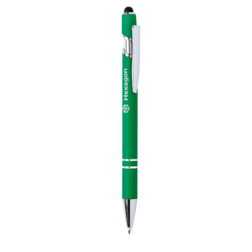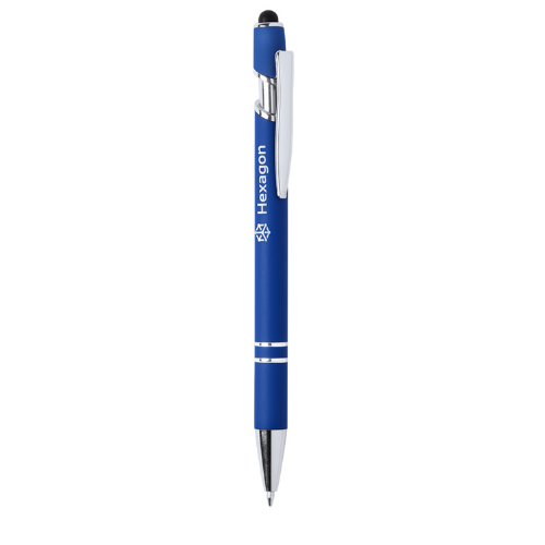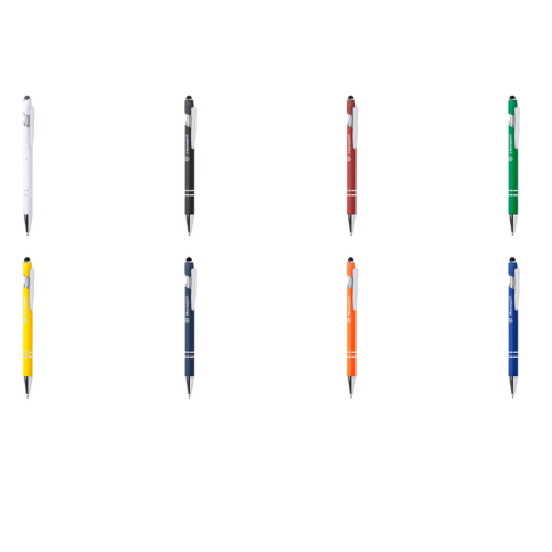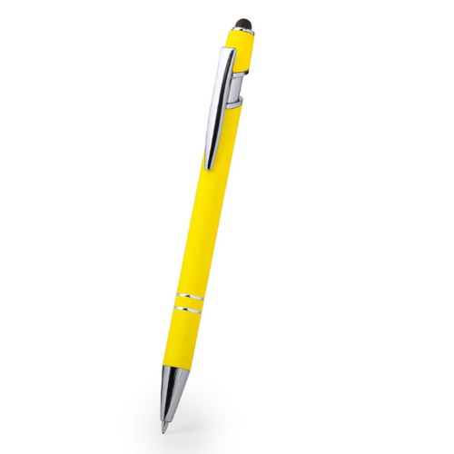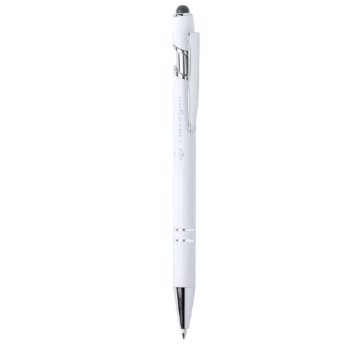 Stylo à bille poussoir avec un design audacieux. Corps en aluminium avec finition gomme, spécialement conçu pour l'impression laser, montrant le logo en ton argent. Avec des accessoires chromés et un clip en métal. Disponible dans une large gamme de couleurs, avec une cartouche jumbo et encre bleue.