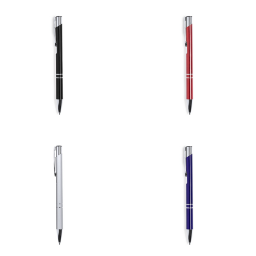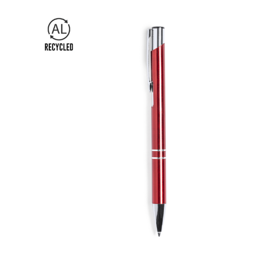 Stylo écologique en aluminium recyclé. Avec un mécanisme à bouton-poussoir, avec un corps disponible dans une large gamme de couleurs métalliques et d'accessoires chromés. Avec clip en métal et aluminium recyclé distinctif sur le dessus du stylo. Cartouche Jumbo et encre bleue.
